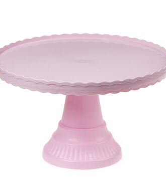 Λευκή βάση γλυκών με στρογγυλή επιφάνεια και κυματιστό σχέδιο στο περίγραμμα. Η βάση είναι κατασκευασμένη από πλαστικό υλικό και έχει ένα στέρεο πόδι με ανάγλυφες λεπτομέρειες. ΔΙΑΣΤΑΣΗ 33.00εκ x 20.00εκ x 0.00εκ
