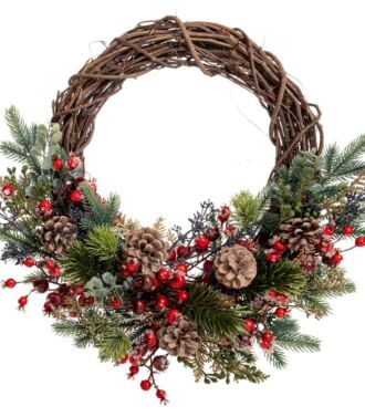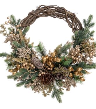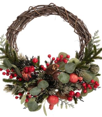 ΠΡΑΣΙΝΟ ΣΤΕΦΑΝΙ ΜΕ ΚΟΚΚΙΝΑ ΚΑΙ ΧΡΥΣΑ BERRIES 55ΕΚ
