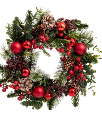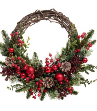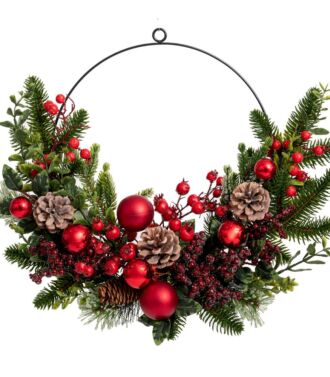 ΠΡΑΣΙΝΟ ΣΤΕΦΑΝΙ ΜΕ ΚΟΚΚΙΝΑ BERRIES ΚΟΚΚΙΝΕΣ ΜΠΑΛΛΕΣ ΚΑΙ ΠΑΓΩΜΕΝΟ ΚΟΥΚΟΥΝΑΡΙ Φ40ΕΚ