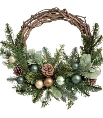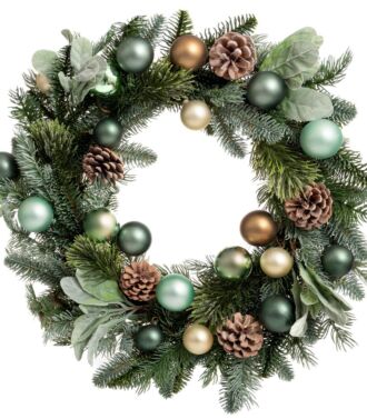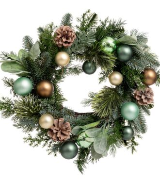 ΠΡΑΣΙΝΟ ΣΤΕΦΑΝΙ ΜΕ ΠΕΥΚΟ ΜΕ ΧΡΙΣΤΟΥΓΕΝΝΙΑΤΙΚΕΣ ΜΠΑΛΕΣ Φ71ΕΚ