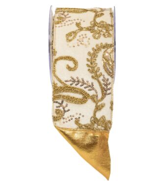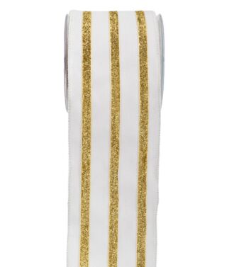 ΚΟΡΔ.LINED VELVET 10cm x 4.5m ΛΕΥΚΟ-ΧΡΥΣΟ