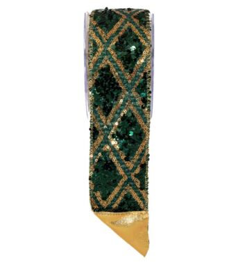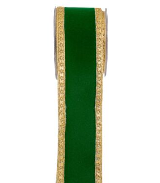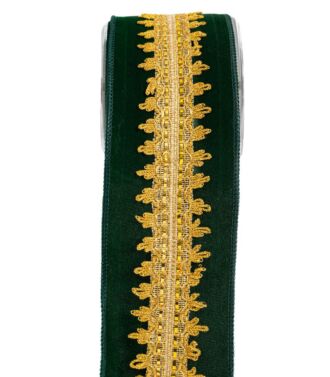 ΚΟΡΔ.LINED VELVET 10cm x 4.5m ΠΡΑΣΙΝΟ-ΧΡΥΣΟ