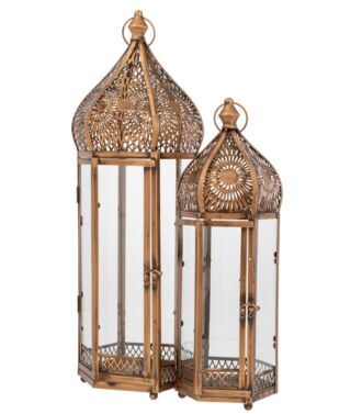ΣΕΤ 2 ΧΡΥΣΟ VINTAGE ΜΕΤΑΛΛΙΚΟ ΦΑΝΑΡΙ 25,5Χ22,5Χ68 19,5Χ17Χ52ΕΚ