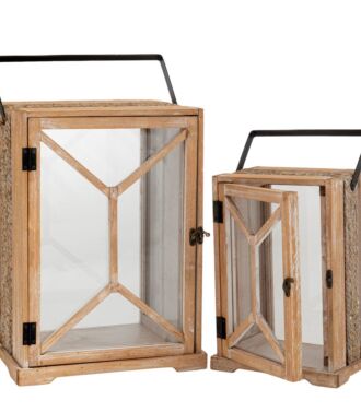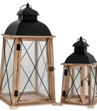 ΣΕΤ 2 ΦΑΝΑΡΙ ΞΥΛΙΝΟ ΟΡΘΟΓΩΝΙΟ ΜΕ ΜΑΥΡΟ ΧΕΡΟΥΛΙ 30Χ18Χ31 21Χ13,5Χ25ΕΚ