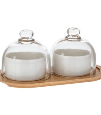 ΛΕΥΚΑ ΚΕΡΑΜΙΚΑ ΜΠΩΛ ΣΕΡΒΙΡΙΣΜΑΤΟΣ ΜΕ ΓΥΑΛΙΝΟ ΚΑΠΑΚΙ ΣΕ BAMBOO ΒΑΣΗ 24Χ12Χ10ΕΚ
