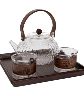 ΣΕΤ 4 ΞΥΛΙΝΟΣ ΔΙΣΚΟΣ ΜΕ ΓΥΑΛΙΝΗ ΤΣΑΓΙΕΡΑ AND ΠΟΤΗΡΙΑ 23,5Χ23,5Χ11ΕΚ