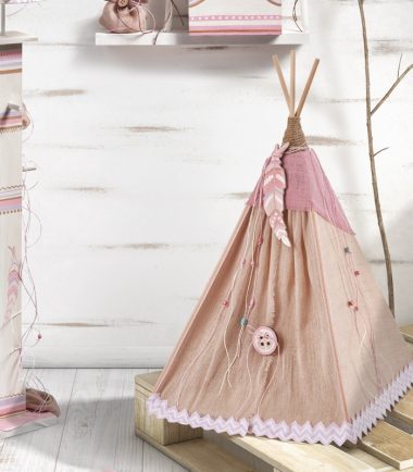 Ξύλινη natural σκηνή ,συσκευασία βάπτισης σε ethnic στυλ,ντυμένη με ύφασμα ροζ και διακοσμημένη με τσουβάλι σε ροζ απόχρωση και ξύλινο φτερό με πολλά ethnic στοιχεία Διαστάσεις: Βάση : 51 x 49,5 cm Ύψος πλευράς : 63 cm Συνολικό ύψος: 85 cm