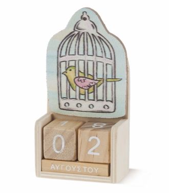 Μπομπονιέρα Βάπτισης Ξύλινο ημερολόγιο κλουβάκι