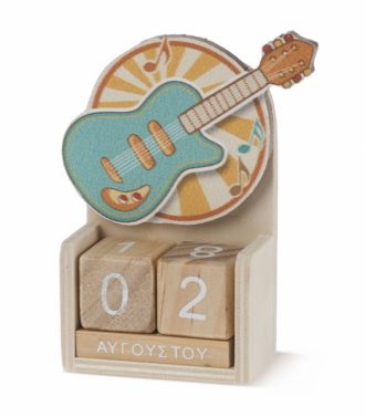 Ξύλινο ημερολόγιο με κύβους σε natural χρώμα. Διακοσμημένο με κοπτικό.Η παράσταση είναι κιθάρα. Κοπτικό: 6×9,4cm Ημερολόγιο: 3×6.5×9.5cm