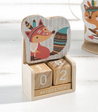 Μπομπονιέρα Βάπτισης Ξύλινο ημερολόγιο αλεπού ethnic