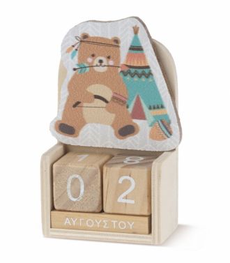 Μπομπονιέρα Βάπτισης Ξύλινο ημερολόγιο αρκουδάκι ethnic
