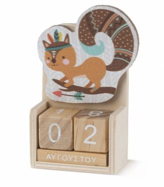 Μπομπονιέρα Βάπτισης Ξύλινο ημερολόγιο σκιουράκι ethnic