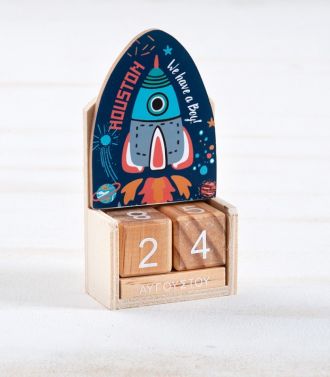Ξύλινο ημερολόγιο με κύβους σε natural χρώμα. Διακοσμημένο με κοπτικό Διάστημα. Διάστ.: 3×6,5×9,5cm Κοπτικό: 6.4×0.4×8.2cm Ελάχιστος χρόνος αποστολής: 8-10 εργάσιμες ημέρες.