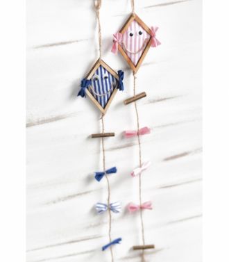 Κρεμαστός διακοσμητικός χαρταετός.Φτιαγμένος από ύφασμα διακοσμημένος με ξύλινα κλαδάκια. Διατίθεται σε 2 χρώματα: Ρ: Ριγέ Ροζ Β: Ριγέ Σιέλ Επιλέξτε από την κατηγορία Χρώμα αυτό που επιθυμείτε. Διαστάσεις: 6.8 x 0.7 x 11cm Συνολικό ύψος:63cm Ελάχιστη ποσότητα 24 τμχ