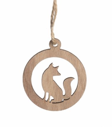 Ξύλινη κρεμαστή διακοσμητική αλεπού σε natural απόχρωση. Διακοσμημένη μέσα σε στρογγυλό πλαίσιο. Διάμετρος: 5cm Συνολικό ύψος: 14.5cm