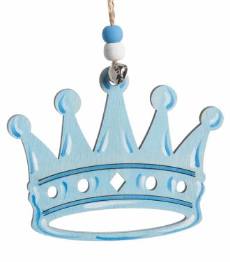 Διάστ.: 11×0,4x9cm Συν. Ύψος: 19cm Ξύλινη κρεμαστή κορώνα σε σιελ χρώμα διακοσμημένη με χάντρες και μεταλλικό κουδουνάκι. Ιδανικό για διακόσμηση. Σιελ και στις 2 όψεις.