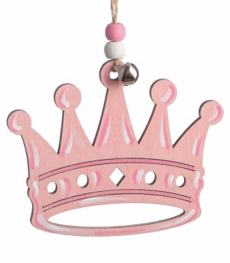 Διάστ.: 11×0,4x9cm Συν. Ύψος: 19cm Ξύλινη κρεμαστή κορώνα σε ροζ χρώμα διακοσμημένη με χάντρες και μεταλλικό κουδουνάκι. Ιδανικό για διακόσμηση. Ροζ και στις 2 όψεις.