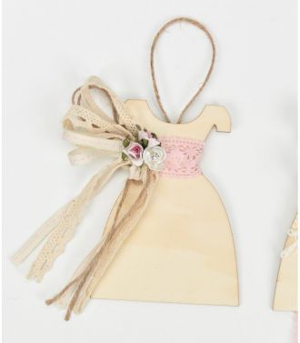 Μπομπονιέρα ξύλινο φόρεμα με κορδέλα και δαντέλα Διαστάσεις: 8*12cm