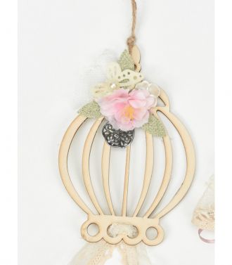 Μπομπονιέρα ξύλινη αερόστατο με ροζ λουλούδι 10*16cm