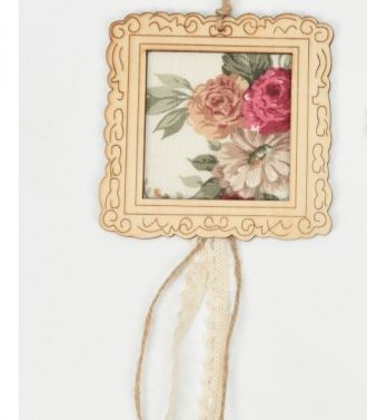 Μπομπονιέρα ξύλινη κορνίζα τετράγωνη με ύφασμα λουλούδια 12*12cm