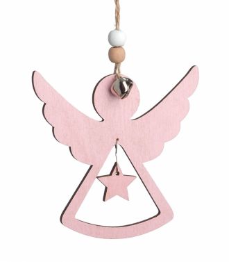 Διάστ.: 9,7×0,5x9cm Συν. Ύψος: 19cm Ξύλινο κρεμαστό αγγελάκι σε ροζ χρώμα, διακοσμημένο με χάντρες και μεταλλικό κουδουνάκι. Ιδανικό για διακόσμηση.