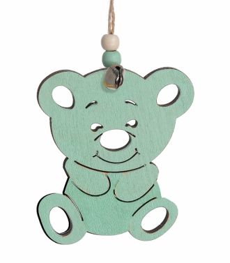 Διάστ.: 7,5×0,4x10cm Συν. Ύψος: 19cm Ξύλινο κρεμαστό αρκουδάκι σε natural χρώμα, διακοσμημένο με χάντρες και μεταλλικό κουδουνάκι. Ιδανικό για διακόσμηση.