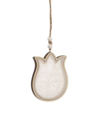 Ξύλινο κρεμαστό τύπου τελάρο natural σε σχήμα τουλίπας , ντυμένο με λευκό ύφασμα.Ιδανικό για κατασκευές. Διάστ.: 10x1x12cm Συν. Ύψος: 24cm
