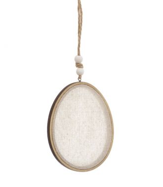 Ξύλινο κρεμαστό τύπου τελάρο natural σε σχήμα αυγού, ντυμένο με λευκό ύφασμα.Ιδανικό για κατασκευές. Διάστ.: 10x1x12.5cm Συν. Ύψος: 24cm