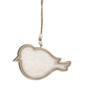 Ξύλινο κρεμαστό τύπου τελάρο natural σε σχήμα πουλιού, ντυμένο με λευκό ύφασμα.Ιδανικό για κατασκευές. Διάστ.: 16x1x9.5cm Συν. Ύψος: 21cm