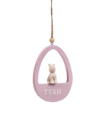 Ξύλινο κρεμαστό ροζ αυγουλάκι με λευκό κουνελάκι μέσα, πάνω στο οποίο αναγράφεται η λέξη ΤΥΧΗ. Ιδανικό και για διακοσμήσεις και κατασκευές . Λαγουδάκια: 1.5x4cm Αυγό:7.2×0.8x10cm Συν. ύψος: 20cm