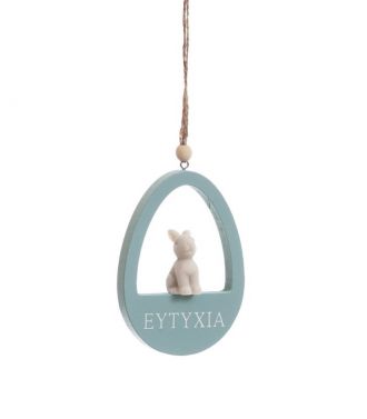 Ξύλινο Κρεμαστό Αυγουλάκι Με Κουνελάκι