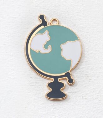 Μεταλλική κρεμαστή διακοσμητική υδρόγειος σε χρυσό χρώμα με σμάλτο βεραμάν-μπλε navy. Κατάλληλο για διακοσμήσεις και χειροποίητες κατασκευές. Η συσκευασία περιέχει 10 τεμάχια. Διάσταση: 3.5 x 0.1 x 5.5 cm Τρύπα 3mm