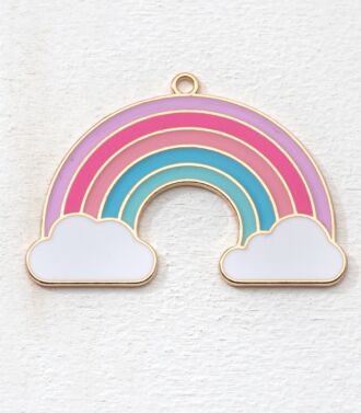 Μεταλλικό κρεμαστό διακοσμητικό ουράνιο τόξο σε χρυσό χρώμα με σμάλτο πολύχρωμο. Κατάλληλο για διακοσμήσεις και χειροποίητες κατασκευές. Η τιμή αφορά το τεμάχιο Διάσταση: 6 x 0.15 x 4.3cm Τρύπα 3mm