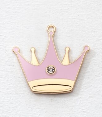 Μεταλλική κρεμαστή διακοσμητική κορώνα σε χρυσό χρώμα με σμάλτο ροζ και στρας. Κατάλληλο για διακοσμήσεις και χειροποίητες κατασκευές. Η συσκευασία περιέχει 10 τεμάχια. Διάσταση: 4.5cm x 0.1 x 4.2 cm Τρύπα 3mm