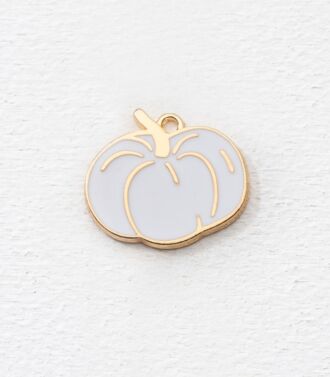 Μεταλλική κρεμαστή διακοσμητική κολοκύθα σε χρυσό χρώμα με σμάλτο λευκό. Κατάλληλο για διακοσμήσεις και χειροποίητες κατασκευές. Η συσκευασία περιέχει 10 τεμάχια. Διάσταση: 2.5cm x 0.15 x 2.3 cm Τρύπα 2mm