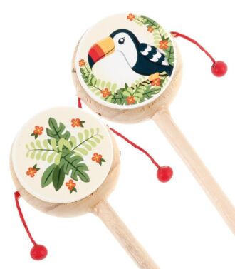 Ξύλινο natural τυμπανάκι με αυτοκόλλητο print toucan με διαφορετικό σχέδιο μπρος-πίσω. Τα τυμπανάκια έχουν αυτοκόλλητο και στις 2 όψεις. Διάστ.: 6,5x20cm Ελάχιστος χρόνος αποστολής: 8-10 εργάσιμες ημέρες.