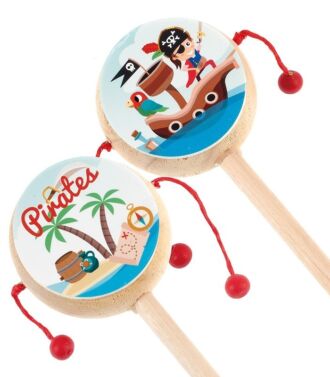 Ξύλινο natural τυμπανάκι με αυτοκόλλητο print πειρατής με διαφορετικό σχέδιο μπρος-πίσω. Τα τυμπανάκια έχουν αυτοκόλλητο και στις 2 όψεις. Διάστ.: 6,5x20cm Ελάχιστος χρόνος αποστολής: 8-10 εργάσιμες ημέρες.