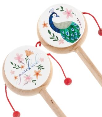 Ξύλινο natural τυμπανάκι με αυτοκόλλητο print παγώνι με διαφορετικό σχέδιο μπρος-πίσω. Τα τυμπανάκια έχουν αυτοκόλλητο και στις 2 όψεις. Διάστ.: 6,5x20cm Ελάχιστος χρόνος αποστολής: 8-10 εργάσιμες ημέρες.