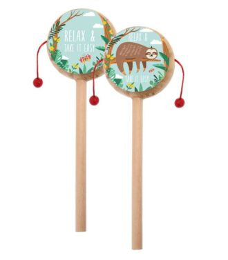 Ξύλινο natural τυμπανάκι με αυτοκόλλητο print Βραδύποδας με διαφορετικό σχέδιο μπρος-πίσω. Τα τυμπανάκια έχουν αυτοκόλλητο και στις 2 όψεις. Διάστ.: 6,5x20cm Ελάχιστος χρόνος αποστολής: 8-10 εργάσιμες ημέρες.