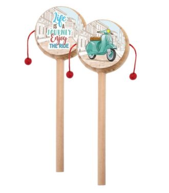 Ξύλινο natural τυμπανάκι με αυτοκόλλητο print Βέσπα με διαφορετικό σχέδιο μπρος-πίσω. Τα τυμπανάκια έχουν αυτοκόλλητο και στις 2 όψεις. Διάστ.: 6,5x20cm Ελάχιστος χρόνος αποστολής: 8-10 εργάσιμες ημέρες.