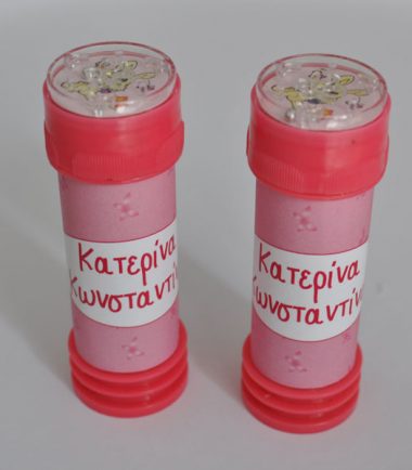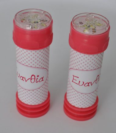 Μπομπονιέρα Βάπτισης Σαπουνόφουσκα Πουα με Όνομα.