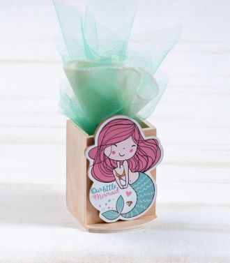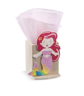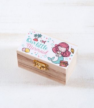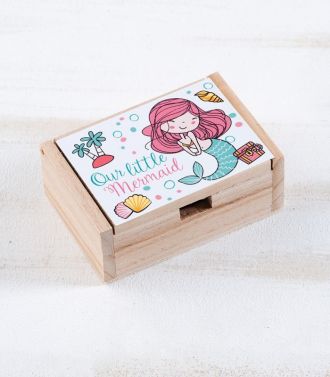 Ξύλινο natural σεντούκι με μεταλλικό κούμπωμα. Είναι διακοσμημένο με αυτοκόλλητο print Γοργόνα. Διάστ.: 8,5×4,5x5cm Ελάχιστος χρόνος αποστολής: 8-10 εργάσιμες ημέρες.