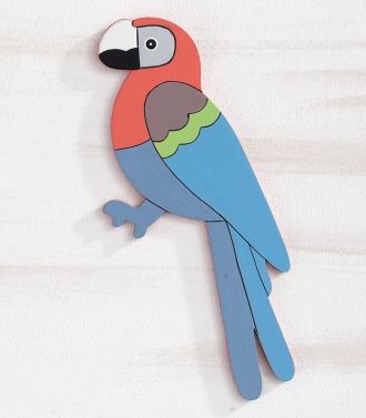 Ξύλινο διακοσμητικό κρεμαστό τοίχου πολύχρωμος παπαγάλος. Ιδανικό και για κατασκευές Διάστ.: 3×0,5x9x22cm