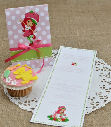 Προσκλητήριο Βάπτισης Φραουλίτσα Με Εκτύπωση