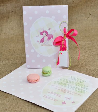 Προσκλητήριο Βάπτισης Πουά Νεράιδα Με Εκτύπωση