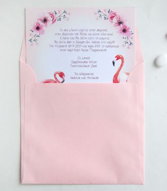 Προσκλητήριο Βάπτισης Φλαμίγκο Με Εκτύπωση