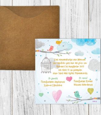 Προσκλητήριο Βάπτισης Πουλάκια Με Εκτύπωση