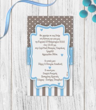 Προσκλητήριο Βάπτισης Ριγέ Αγόρι Με Εκτύπωση