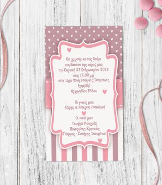 Προσκλητήριο Βάπτισης Ριγέ Κορίτσι Με Εκτύπωση