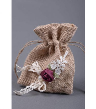 Πουγκί από λινάτσα μαζί με το διάκοσμο. Διαστάσεις: 10 x 14 Εκ. Για να Δημιουργήσετε μόνοι σας τη διακόσμηση που σας αρέσει, Παρακαλώ ανατρέξτε στην Κατηγορία Κατασκευή & Διακόσμηση για την επιλογή των υλικών.